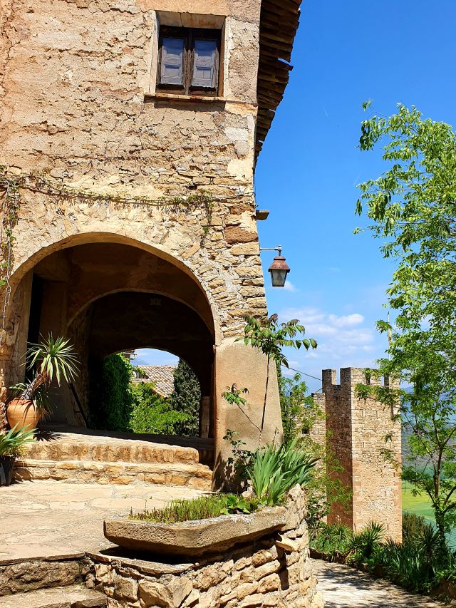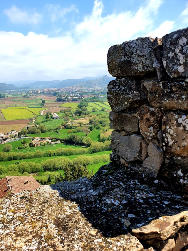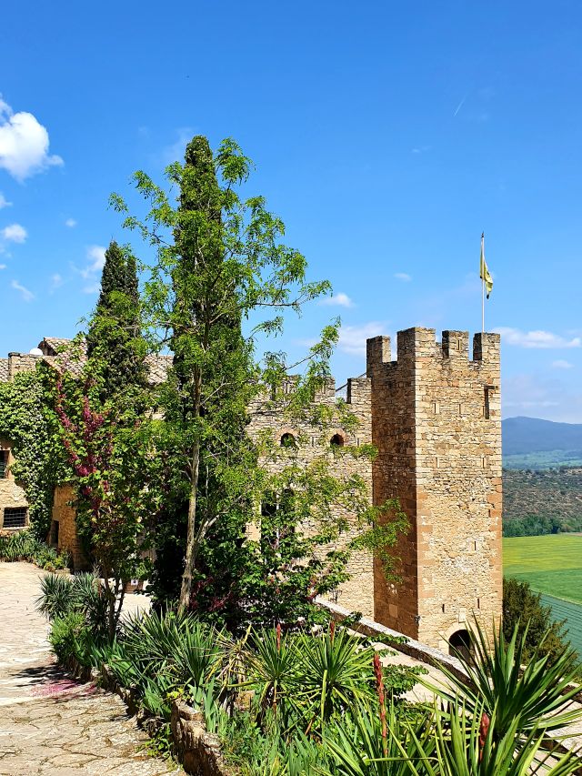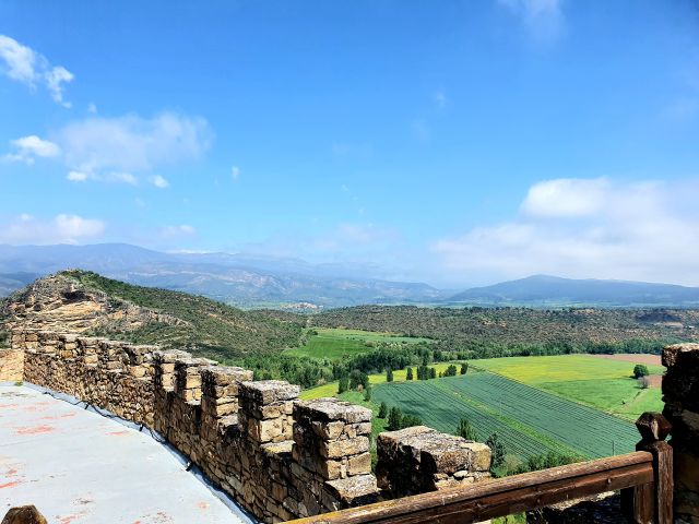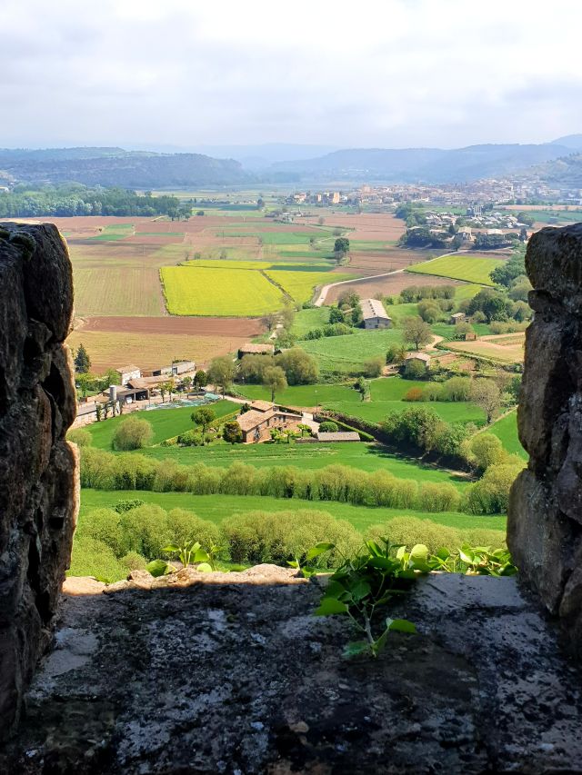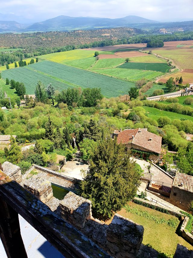 Al fer la visita al castell i sortir a les terrasses es gaudeix d’una fantàstica vista. La visita es va fer a la primavera. Per aquest motiu els camps lluiexen ben verds.