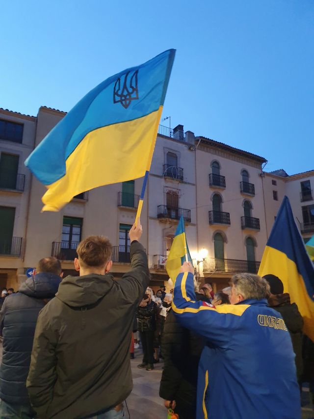 Tenint en compte que vivint aquí hi ha una comunitat d’ucraïnesos, tot i que no és tant important com la de Guissona, des de la Paeria es va convocar a una concentració que va tenir lloc a la plaça Major.