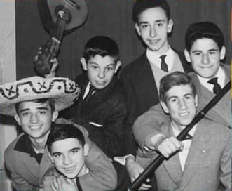 La colleta va molt mudada. O era un reportatge preparat o un dia de festa. Amb barret mexicà, Josep Antoni Serra queagafa Francesc “Paquito” Burgos. Amb la guitarra en plan “agressiu”, Josep M. Riera. Ramon Carreres, destaca per l’alçada. El recordo alt i prim. Josep M. Orobitg fa broma amb el Jordi amb un bastó. Per cet, aquí el Jordi no porta corbata. Llueix una mena de peça, avui en desús.