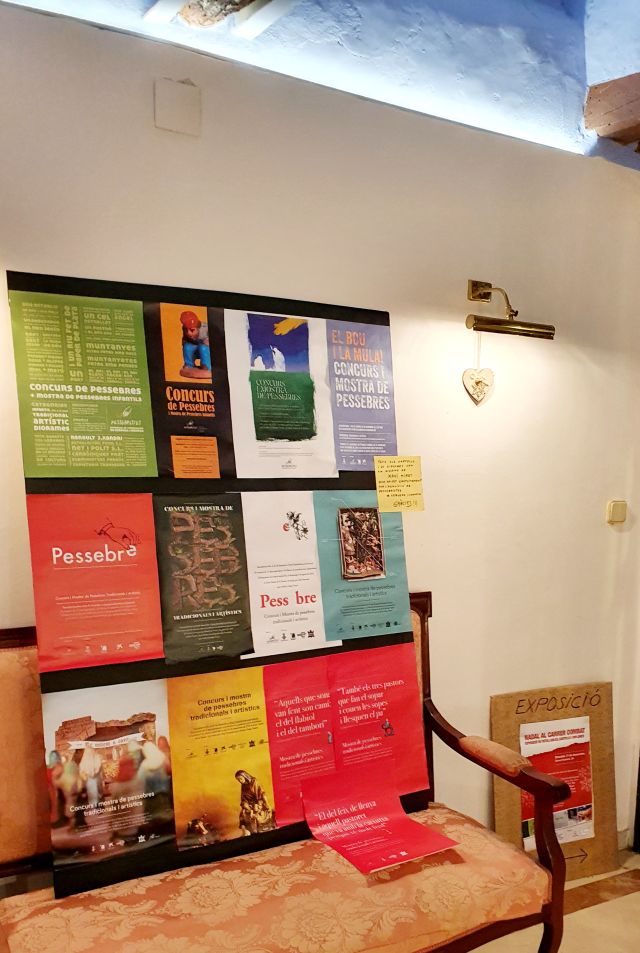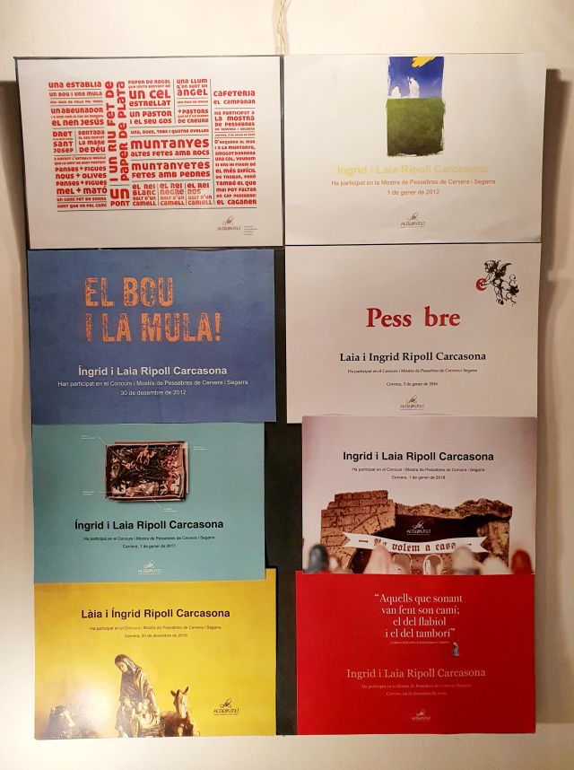 en aquest plafó es podien veure uns quants dels Diplomes que es donen a tothom que s’apunta al Concurs de Pessebres. Tenen el mateix disseny, adaptat, que el cartell de l’any.