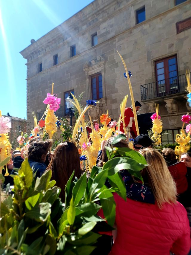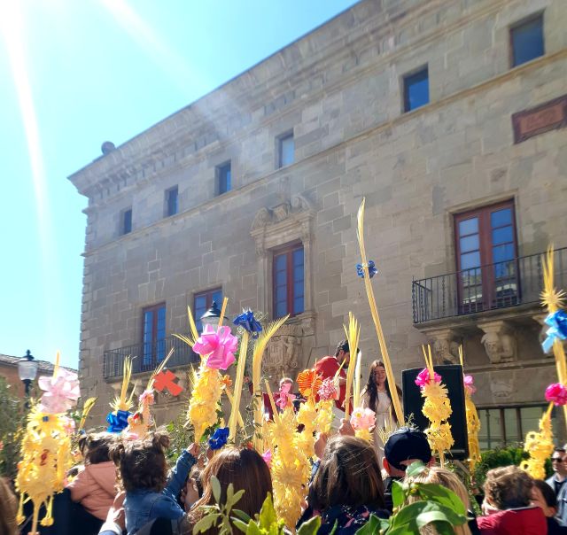La tradició d’anar a beneir la palma i el palmó sembla que està ben arrelada a Cervera ja que, a la plaça Major, es van aplegar moltes famílies en aquest diumenge de Rams. Els protagonistes eren els infants que se’ls veia ben contents. Els grans porten els tradicionals llams de llorer i d’olivera. Tot plegat feia que la plaça lluís alegre i festiva. A més, el dia acompanyava amb un bon sol.