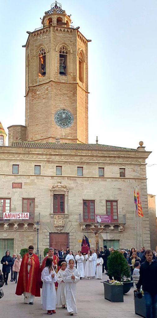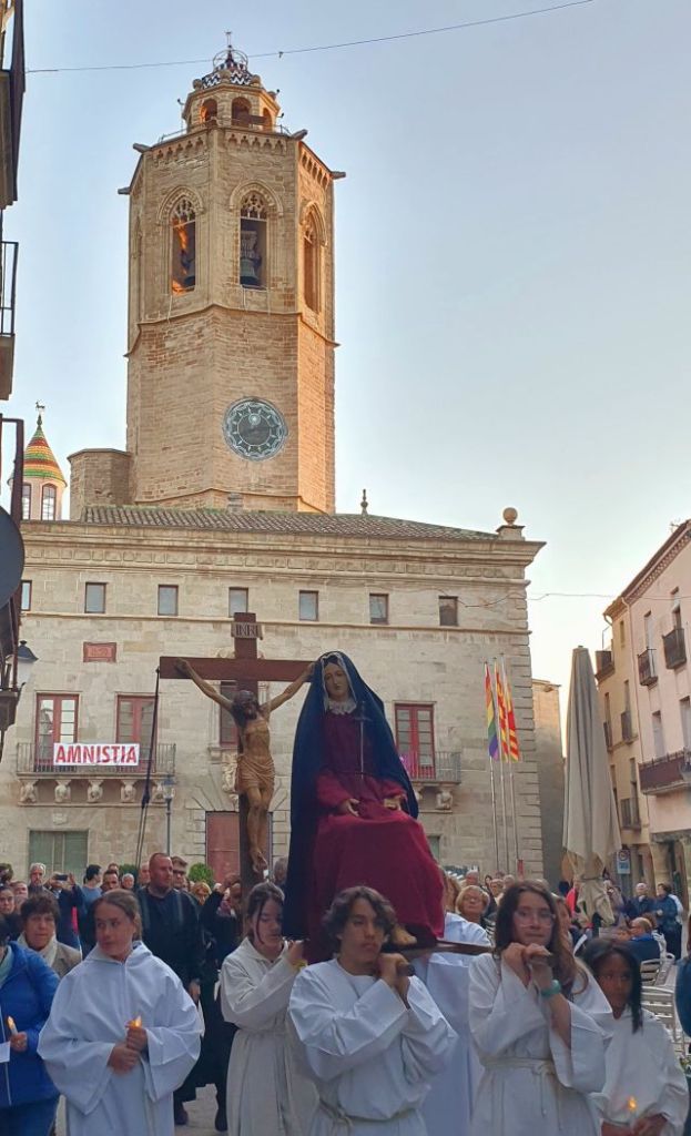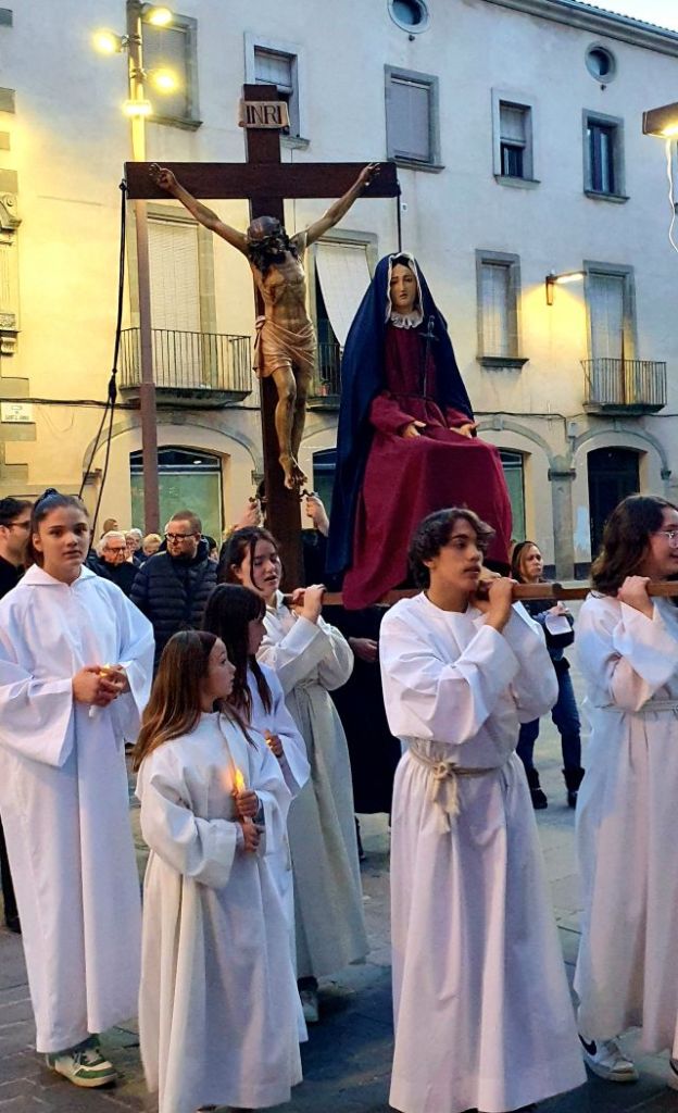 El Viacrucis del Divendres Sant no és com el d’abans, que es feia a les 8 del matí i aplegava una important quantitat de fidels. Ara és més discret. Fa el mateix recorregut que el matiner: va des de la plaça Major fins a l’església de Sant Antoni.