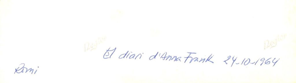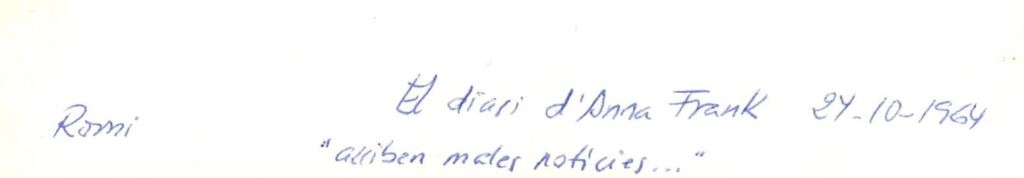 Anna Frank, Romi Porredon, escrivint el diari que, després de morts tots els que estaven al pis d’Amsterdam i, un cop el va trobar el seu pare, l’únic supervivent, va ser traduït a molts idiomes i editat a una gran quantitat de països. Va tenir un èxit espectacular.