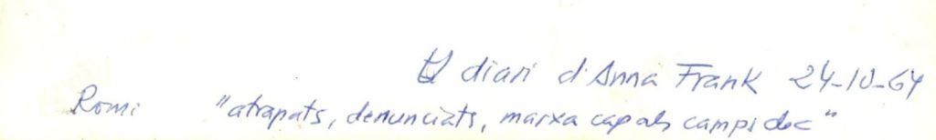 Romi Porredon, havia escrit al revés de totes les fotografies, en uin moment de l’actuació estaven fetes. També hi havia la data del dia de la representació. Això, que moltes vegades descuidem de fer, resulta ideal quan, al cap dels anys, recordem esdeveniments passats.