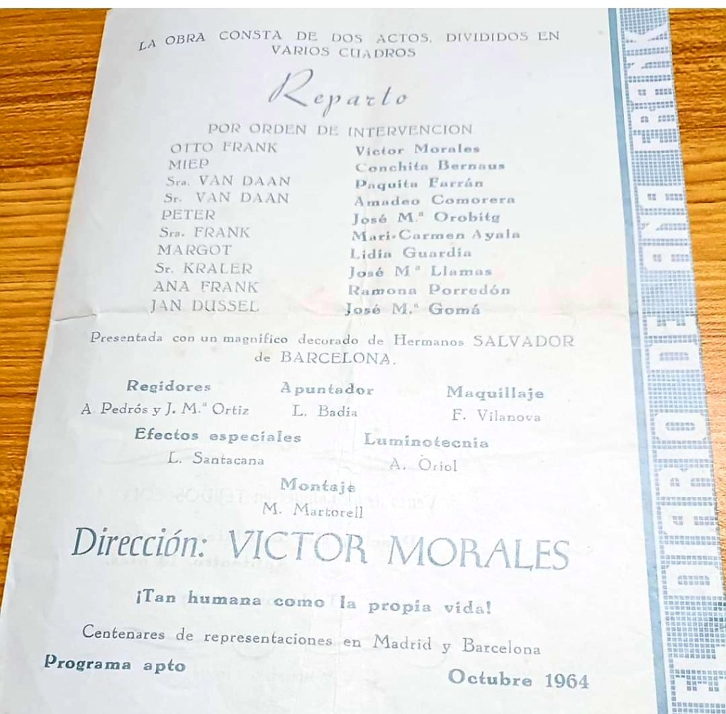 Víctor Morales que interpretava la figura del seu pare. Al fons Peter, Josep M. Orobitg, un adolescent refugiat al mateix pis on estava la família Frank a Amsterdam.