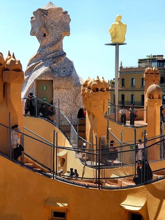 A la coneguda com terrasa dels gegants, per les xemeneies que hi ha les escultures impacten.