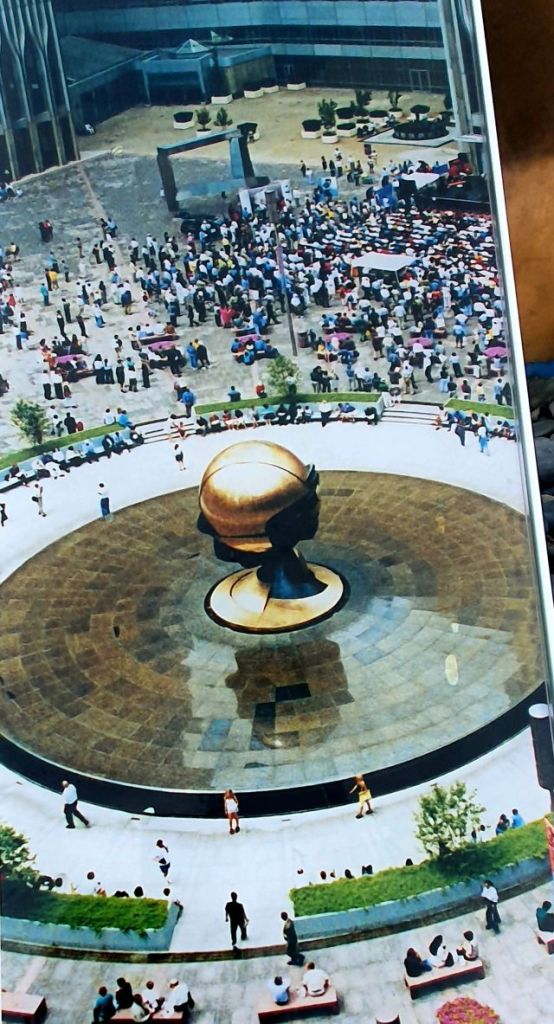 En aquest darrer viatge vaig veure una instal.lació nova. No paren d’arrodonir la restauració d’aquesta zona. Recordo perfectament quan vaig visitar el Worl Trade Center que es veia tal com queda reflectit en aquesta imatge. Una zona del tot impecable amb aquesta esfera que estava entre les dues edificacions,