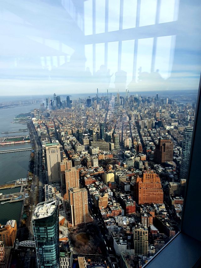Com que està tan a prop de la zona on hi havia les Torres Bessones la vista que es veu de la ciutat és més o menys semblant. El lloc on hi ha el mirador es troba exactament a 417 metres d’alçada que és la mateixa que tenia las torre 1, una de les dues Bessones, a la que jo havia pujat, del World Tade Center original.