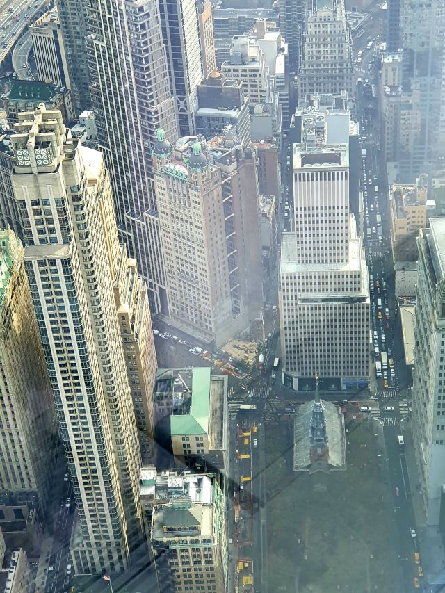 Mirant aquesta fotografia fixeu-vos en el petit edifici que es veu a baix de tot. És la capella de Saint Paul, l’església més antiga de Nova York, on George Washington va fer el seu discurs com a primer president dels Estats Units al 1789. Tot i la destrucció que hi va haver en aquesta zona el dia dels atemptats va quedar en perfecte estat, només coberta de pols.