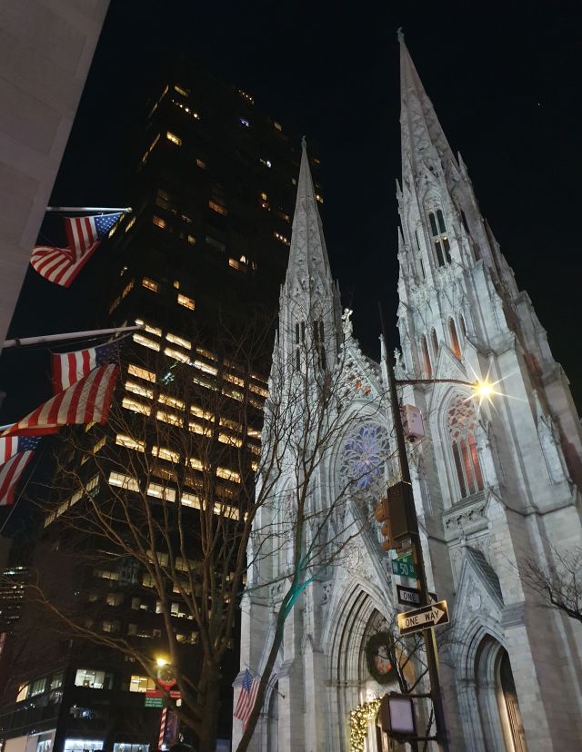 La catedral de Sant Patrici a l’altra banda de la Cinquena Avinguda entre els carrers 50 i 51. És el segon temple més gran d’Amèica del Nord.