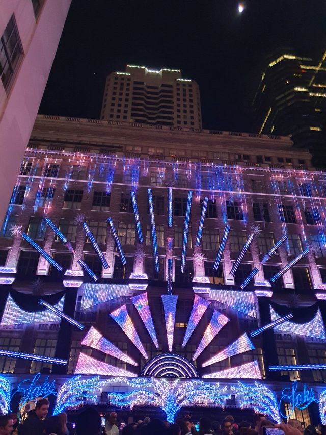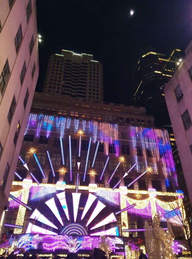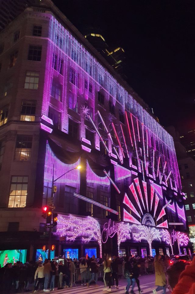 A la dreta de la catedral hi ha la tenda més important de la cadena dels famosos magatzems, Saks Fifth Avenue que, per celebrar les festes, al vespre es podia gaudir amb la projecció d’un mapping damunt la seva façana.