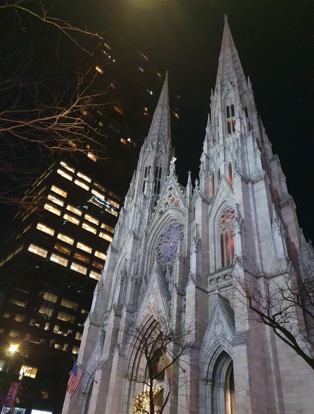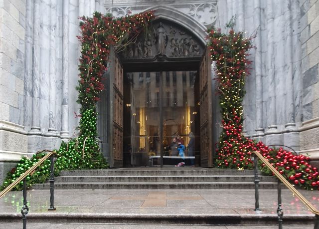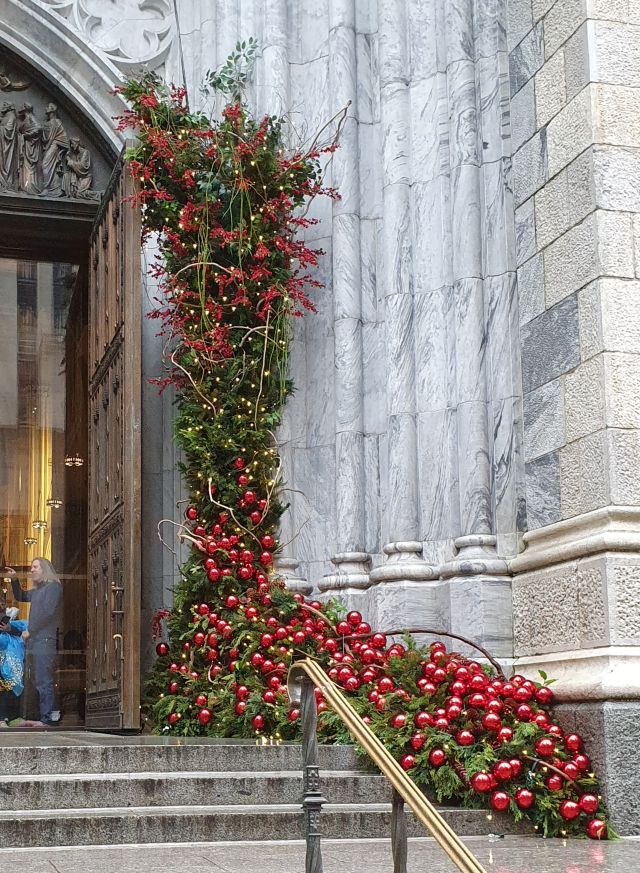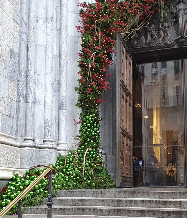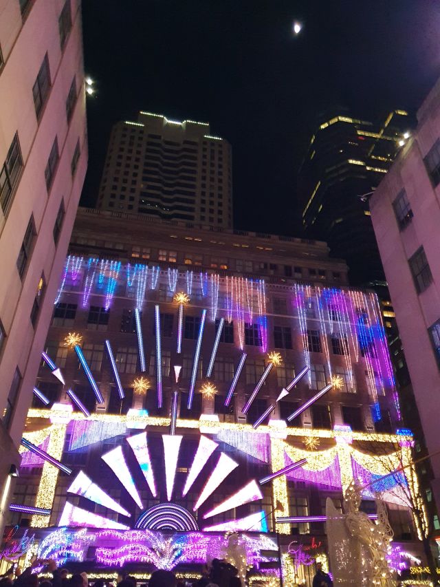A més, a l’altra banda de la Cinquena Avinguda s’hi troba la catedral de Sant Patrici, l’única església que he vist amb la porta decorada amb aires de festa i, enguany, per completar l’espectacularitat d’aquesta zona a la façana dels famosos grans magatzems Saks s’hi projectava un mapping. Imatges, música, la blancor de la catedral, que contrasta amb l’edifici de vidre del darrere i tot l’espai del Rockefeller Center feia, tot plegat, un espectacle inolvidable.