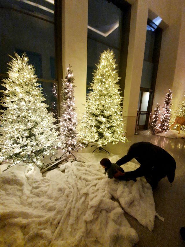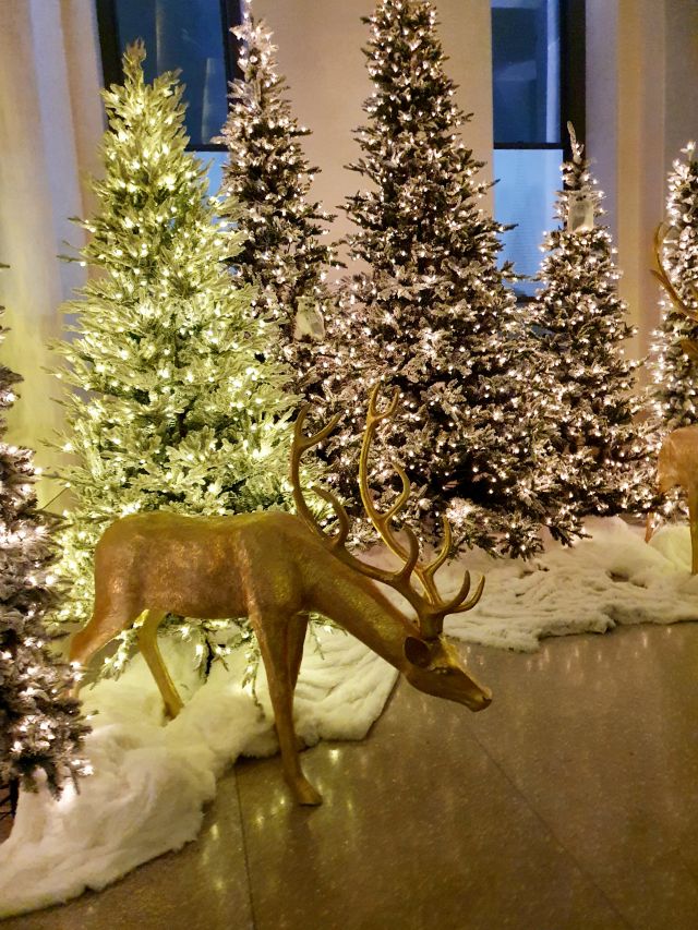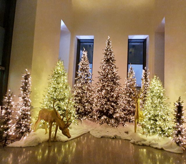 Aquest arbre és una meravella. A part de ser grandiós, porta 45.000 llums de colors, 8 km. de fil elèctric i, l’estrella de cristall que el corona, pesa quasi 500 kg. Espaterrant.