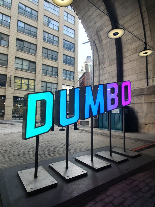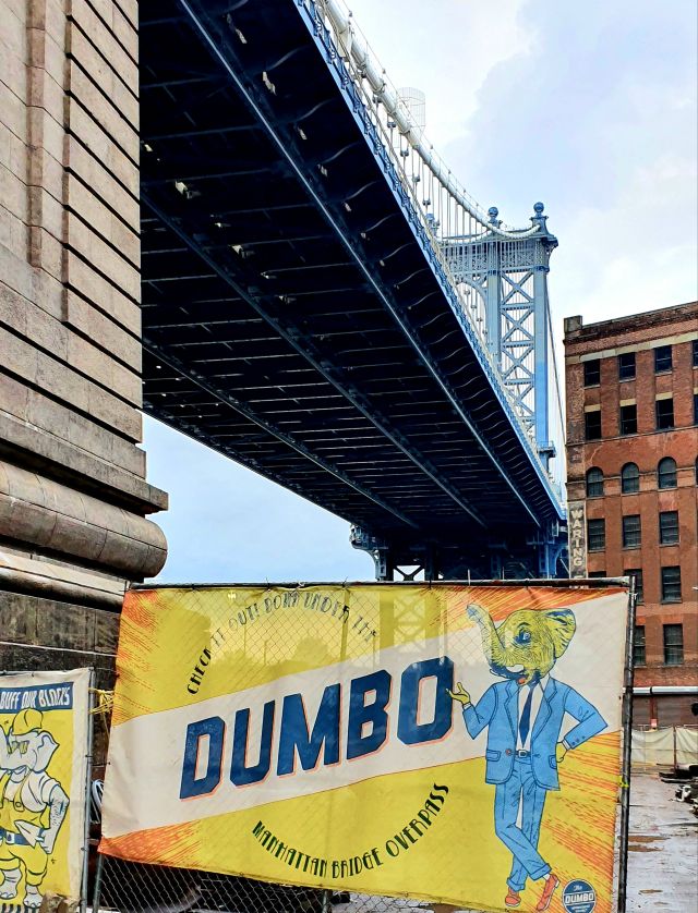 Ben a prop d’aquí s’hi troba el famós barri modern conegut com DUMBO. Els carrers tenen el terra amb adoquins i els antics magatzems s’han reconvertit en botigue, restaurants de luxe i cafeteries.