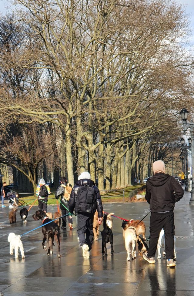 El barri ja apunta un cert status quan veus tants passejadors de gossos. De fet se’n veien una colla.