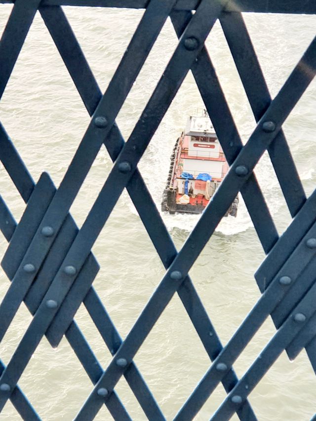 Aquesta és la típica fotografia que es fa tothom. I encara queda millor a l’altra banda d’aquest edifici de color vermellós perquè al seu davant n’hi ha un altre quasibé igual i el pont blau hi destaca molt emmig d’aquests colors tan potents.