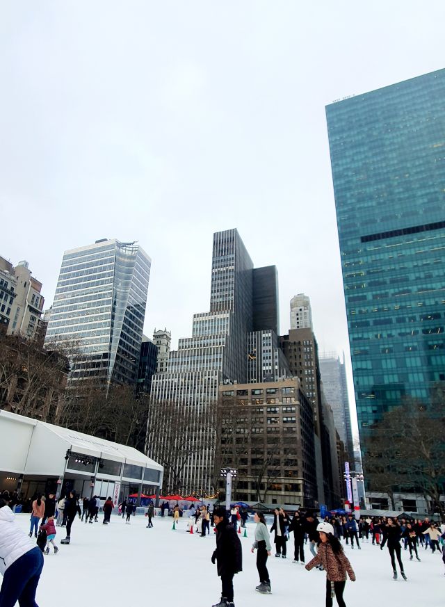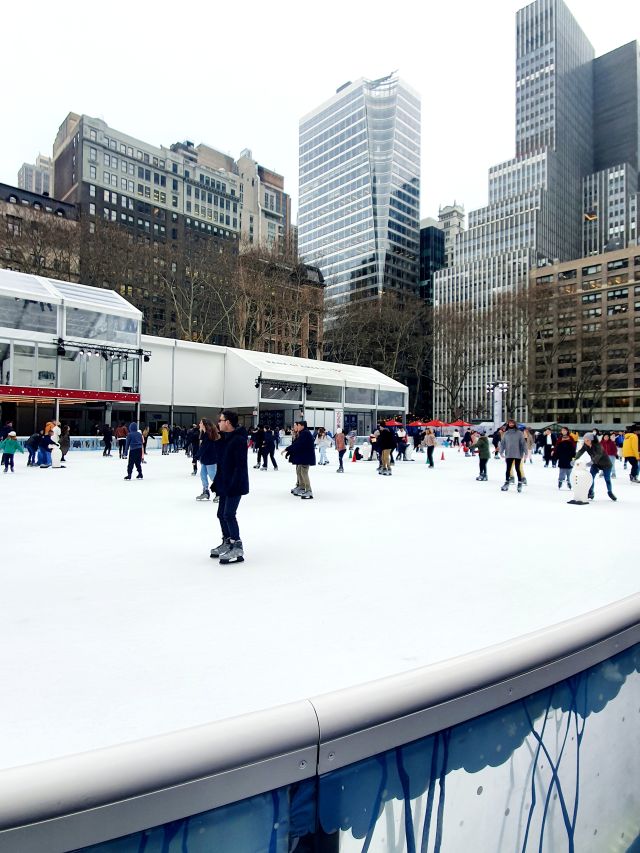 A l’hivern hi instal·len un mercat nadalenc i la pista de patinatge sobre gel, que és gratuïta. L’encesa de l’arbre de Nadal de Bryant Park és una de les activitats més esperades per les festes. És una parada obligatòria!!!!