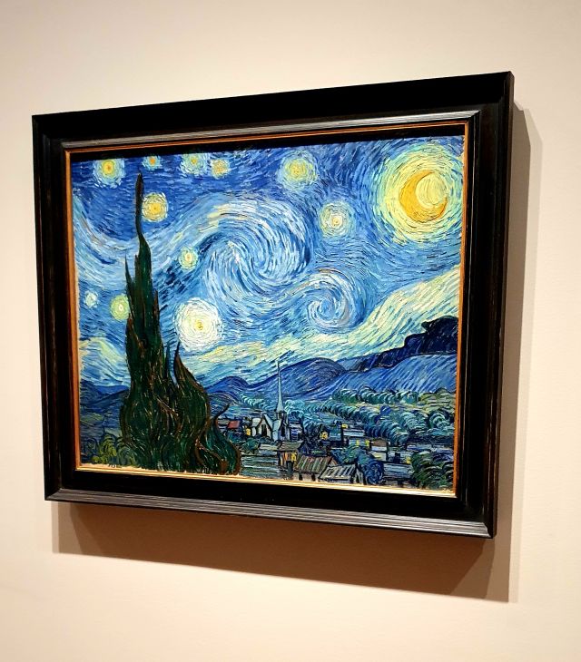 El famós blau Klein, d’Yves Klein, el primer…Hi ha obres de Pablo Picasso, Vincent van Gogh, Edvard Munch, Gustav Klimt, Paul Gauguin…i molts més autors…