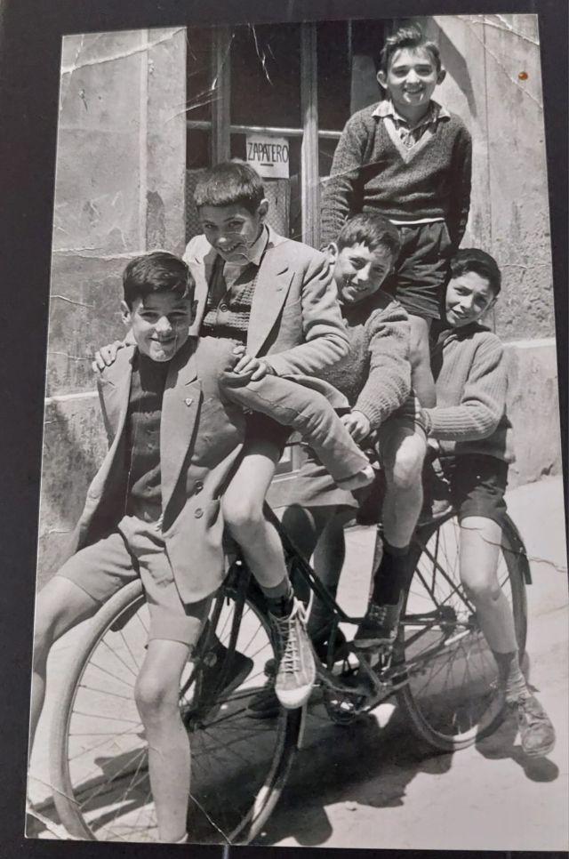 Aquesta colla de jovenets, alguns d’ells molt ben arreglats amb vestit de panatalon curt són, d’esquerra a dreta: Daniel Llona, Joan “Nito” Royes, Jaume Carcasona, Francisco “Xico Valls”, que ja fa anys que ens va deixar i Josep Antoni Serra.