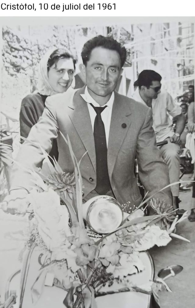 La Vespa era un mitjà de transport ple d’encant. Una jove parella formada per Lola Pellicé i el seu marit, Josep Calafell, van a beneir el seu vehicle que, per cert, porten molt ben guarnit.