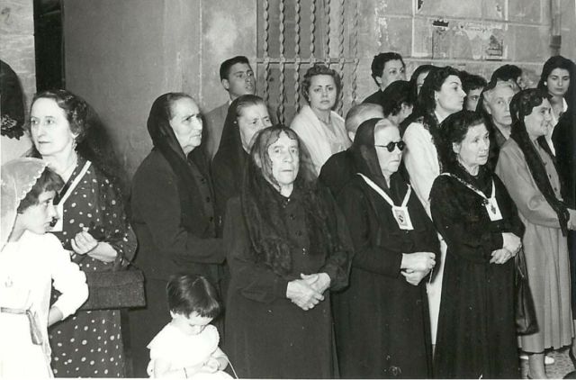 La processó del Cor de Maria era de gran importància. Es feia a l’estiu i, moltes de les participants, portaven l’escapulari penjat del coll. Davant la negror d’aquest estol de dones hi destaca Tresina Fonoll, esposa del doctor Joan Boronat.