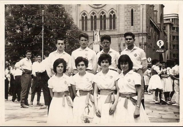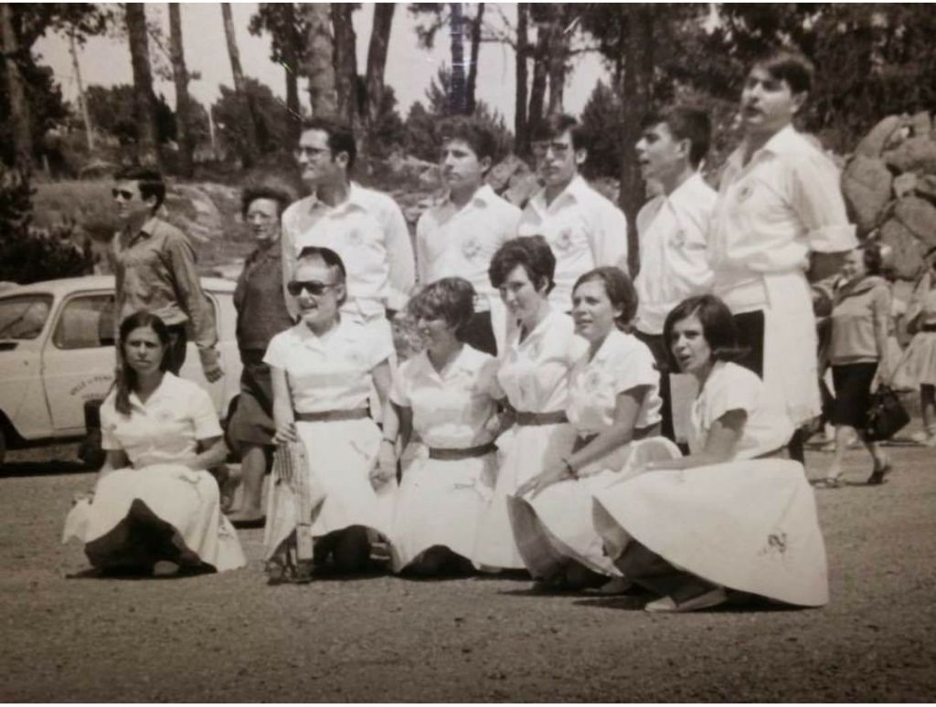 Els grups de sardanistes sempre tenen molt encant. Aquesta colla són dels “Jovencells” que, les noies, portaven un cèrvol brodat a les faldilles.