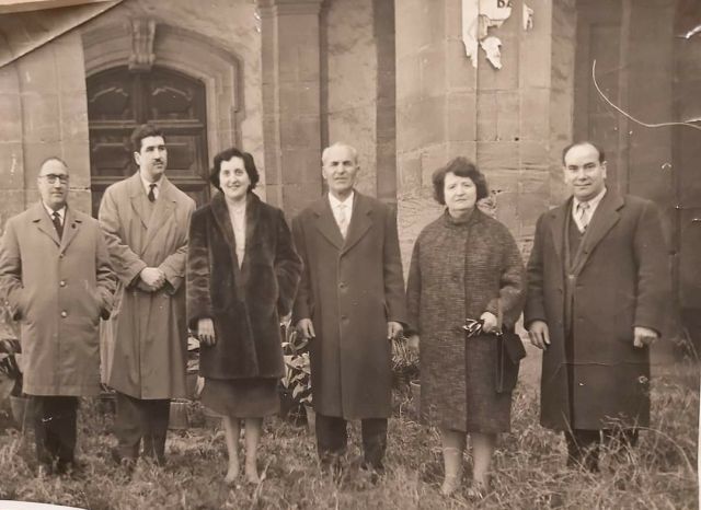 D’esquerra a dreta: Josep Pagés, Ramon Turull, Rosa Altisent, Tella, la seva esposa, Carme Olalde i Ramon Robinat que era conserge.