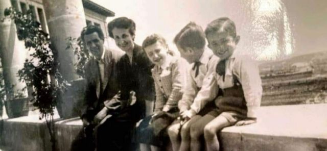 En aquesta imatge podeu veure tota la família, excepte el petit que encara no havia nascut, posant al mirador de la Pèrgola. Al fons, es veu el paisatge segarrenc i, a l’esquerra, una mica de l’edifici del Col·legi Jaume Balmes. Més endavant s’hi va afegir un altre fill, el Jaume.