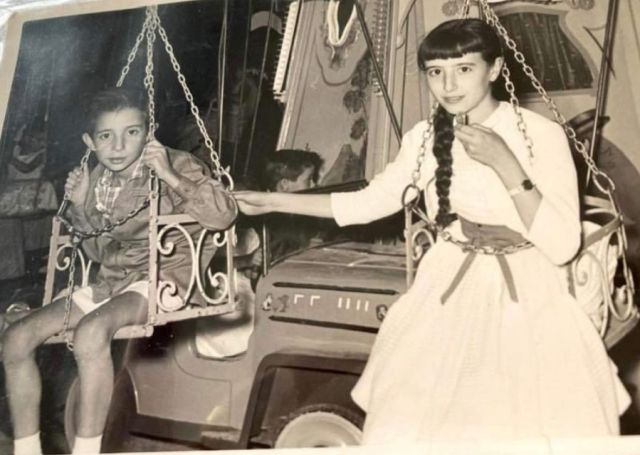 Pels més petits la Festa Major de Cervera era la festa més celebrada de l’any. La il·lusió es tenia per pujar als “cavallitos” i, en créixer muntar a les “cadiretes”. Era molt divertit i tothom demanava que et fessin giravoltar entortolligant-se les cadenes. La Conxita, ja feta una noieta, està acompanyada del seu germà Josep M.
