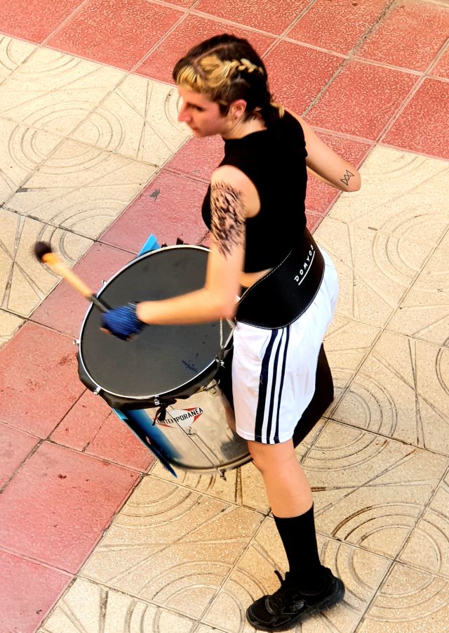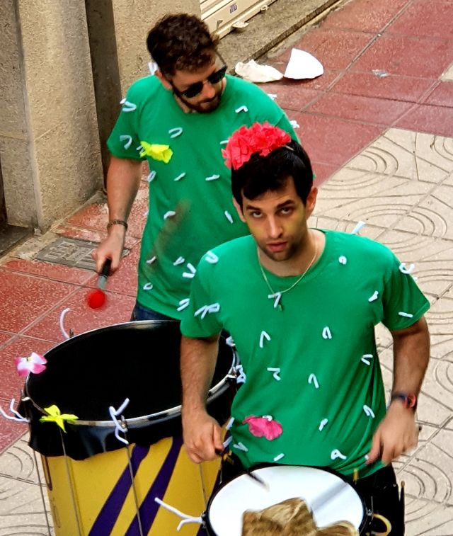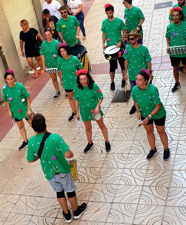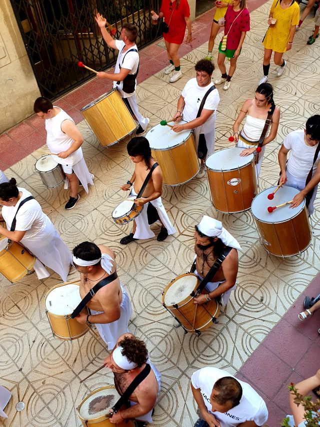 Un grup de percusió, que portaven a l’esquena, petits dipòsits per guardar aigua.