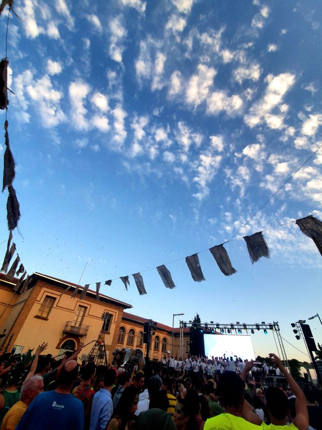 Imatges…que esperem es tornin a repetir any rere any. aquest concert, en altres edicions, s’havia fet a la plaça Major i a l’interior de la Universitat. La localització actual potser és la millor perquè l’espai és gran, queda lloc per tothom i l’entorn resulta fantàstic.