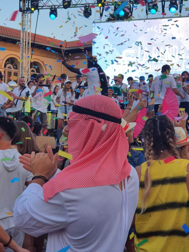 La rua anava arribant al final del seu recorregut. Estava tot preparat per la festa davant el Col·legi Jaume Balmes. Un lloc ideal, amb el paisatge segarrenc que hi ha al fons de la Pèrgola, el bonic edifici del centre educatiu i, al darrere, la Universitat. O sigui que, tot plegat, resultava un gran decorat.