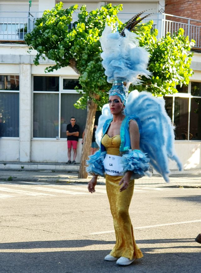 La Reina del Carnaval, que estava representada per un jove, segueix amb la rua, aquí ja a punt de finalitzar el recorregut.