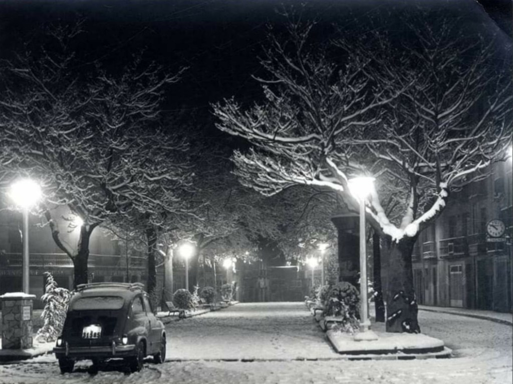 Aquesta fotografia té un encant especial. No perquè enyori aquest passeig amb els arbres, ja que no ens deixava lluir la magnífica façana de la Universitat, però sì perquè ens porta a uns altres temps on el 600 era el protagonista del parc mòbil i la columna, que era un punt d’atenció ja que s’hi enganxava tota la publicitat. Pel que fa a les botigues s’hi destaca, encara que l’establiment no es veu, el rellotge que hi havia a la façana de la “Rellotgeria Domenjó” que ens marcava el pas del temps en una època que ja fa temps ha desaparegut.
