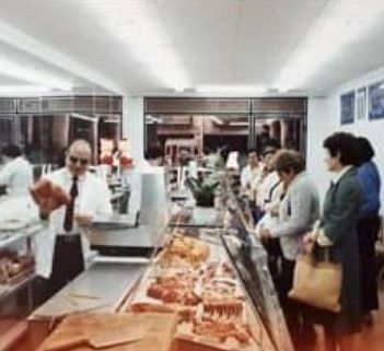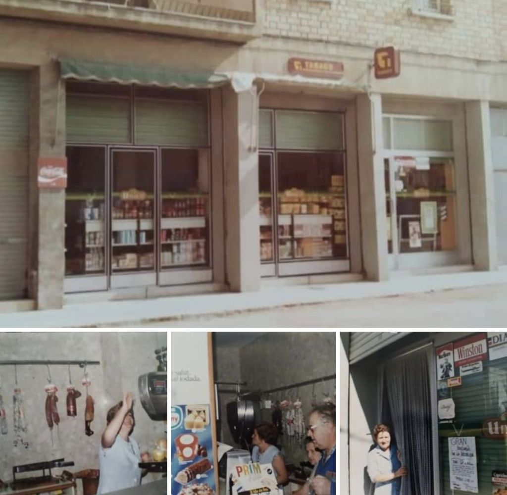 A la del mig, el seu fill, Joan, mira cap al fotògraf, acompanyat d’altres persones que estan darrere el taulell. El tornem a veure, a la tercera imatge, amb la seva bata blanca de treball, atenent a un bon grup de clientes que esperen el torn.