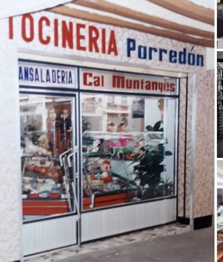 A la plaça Major hi havia algunes botigues molt conegudes: “cal Muntanyés”, la peixateria que hi despatxava la Lidia Puig, la panaderia de “ca l’Alsina” i la coneguda i popular Tocineria Porredón, coneguda com “cal Muntanyés”. Estava situada sota els porxos de la plaça i era un negoci familiar molt apreciat per la gent de Cervera. Ells tenien cura de preparar els que venien i la fama de servir productes molt bons els acompanyava. A la primera fotografia es veu el Sr. Porredon amb la seva esposa al costat.