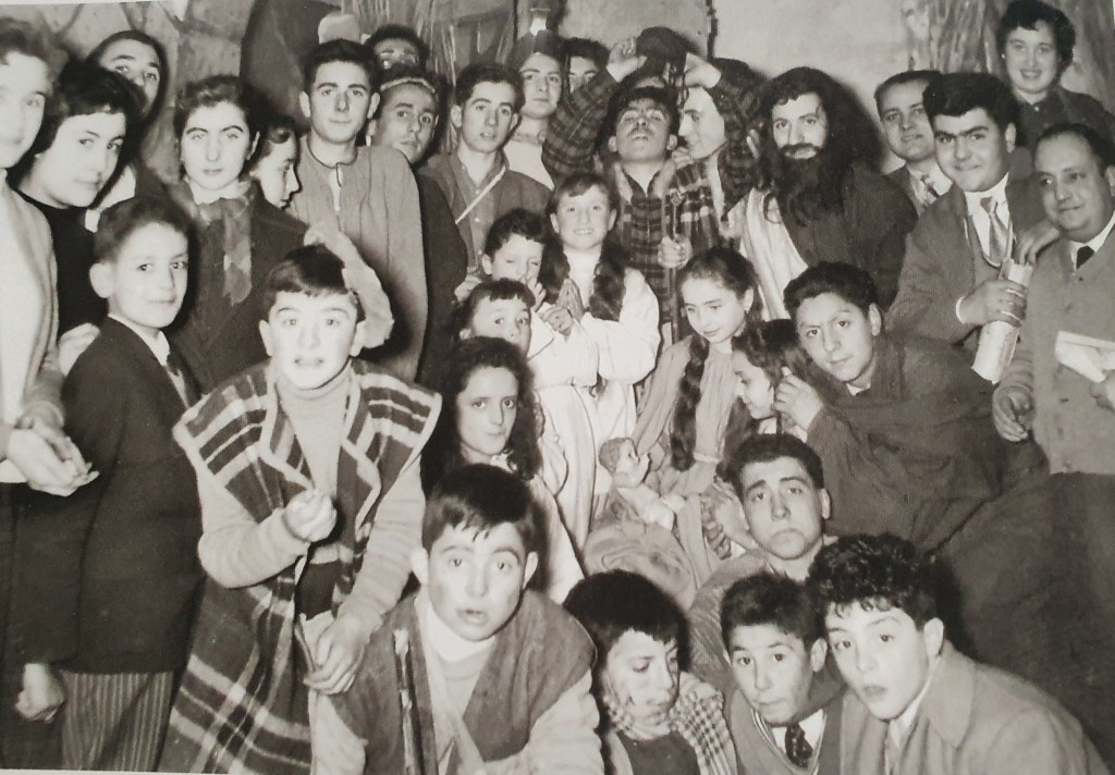 En aquesta fotografia, feta a l’any 1961, es veu un grup que va representar Els Pastorets al Teatre de l’Acció Catòlica, al que s’hi accedia pel carrer Canceller Dou per la torre més propera al Jaume Balmes, hi trobem moltes persones que ens han deixat.