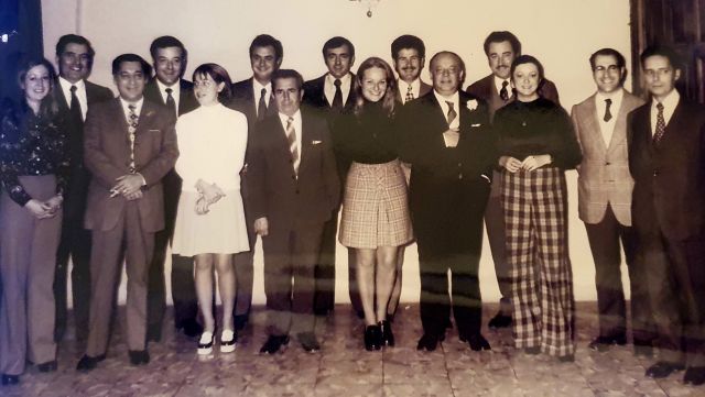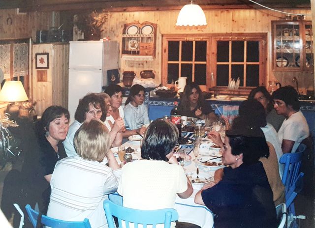 Amb les amigues les celebracions sovintejaven. Aquí amb una altra colla de gent. La imatge és poc nítida però a un costat de la Mercè s’hi veu l’Angelina Vergés i, a l’altre, la Marta Domènec. A continuació, Rosa Salat, Vanesa i Judit Carcasona, Lola Claramunt, Dolors Rivera i, de perfil, Rosita Manuel. Les quatre que estan d’esquena no s’endevina qui són.