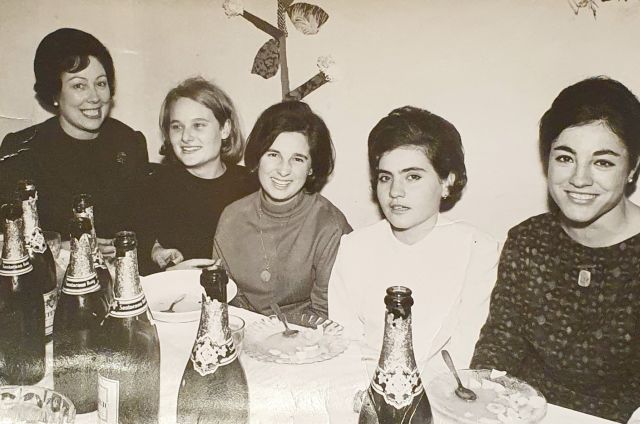 La primera de l’esquerra no identificada, Roser trullols, M. RosaTella i Mercè Segués, sempre amb aquest aire de jove tant actual ja que el pentinat que porta ella no té res a veure amb aquests caps amb tant volum.