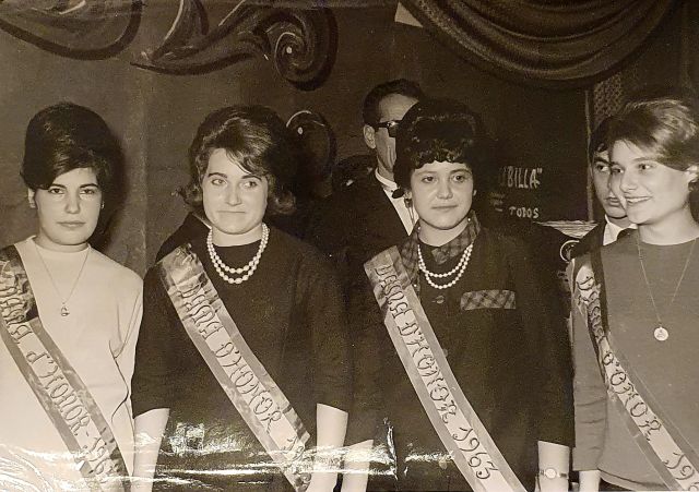 En aquells temps les noies joves, en diferents actes, se’ls nomenava com a Dames d’Honor. No sé exactament si era una festa de modistes o d’una altra cosa. Estem a l’any 1963 i sembla que, lluir collarets de perles o la medalla de la Primera Comunió, era una bona opció.