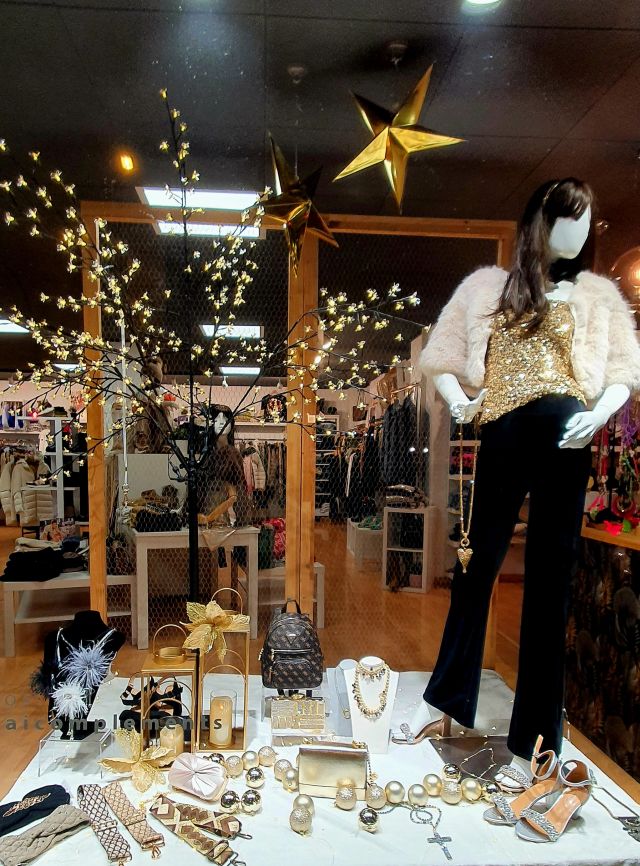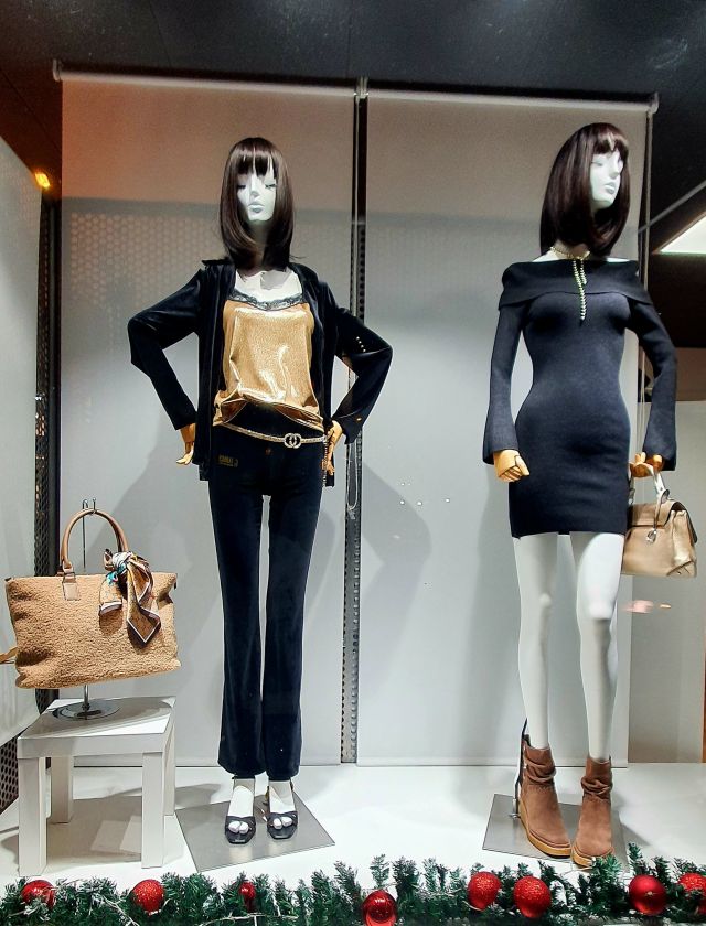 Sònia Moda i Complements canvia molt sovint els models de les maniquís. Aquestes fotografies corresponen als aparadors que es podien veure per Nadal.