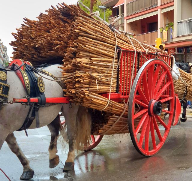 Hi havia càrregues de tota mena. Aquest carro anava ben ple de canyes.