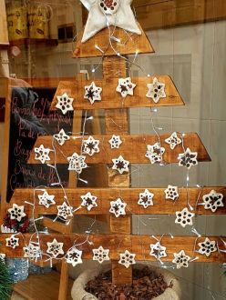 El blog segueix presentant els aparadors cerverins que tant han lluït en aquestes festes. Aquest és el quart post en el que els podeu seguir veient. Jodima Perruqueria Clenxa Esports Truga Ada Bear Travel. Agència de viatges Ferreteria Santi Quiosc, Papers i Més Forn de Pa cal Castellets. Les galetes que decoren l’arbre estan fetes artesanalment i fornejades a casa.