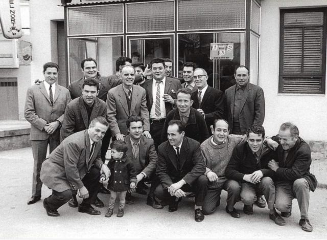 Cares d’alegria són les que es veuen en aquest grup en una fotografia feta davant del Bar del Nord.