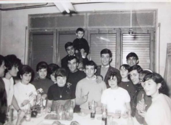 Una fotografia entranyable ja que, a part de la gent que treballava a la Sastreia Botines, aquí s’hi van afegir els components del conjunt exitós i de moda d’aquells temps: els Mustangs. Se suposa que devien venir a Cervera per fer-se càrrec del ball de la Festa de Santa Llúcia i devien fer cap a Cal Botines. D’aquí ve que es van fer la fotografia a l’interior de l’establiment.
