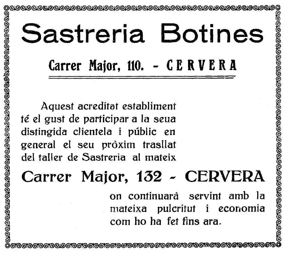 Comencem doncs amb un jove molt eixerit que tenia l’ofici de sastre. Josep Botines fou el fundador de la Sastreria Botines que portava el seu cognom.