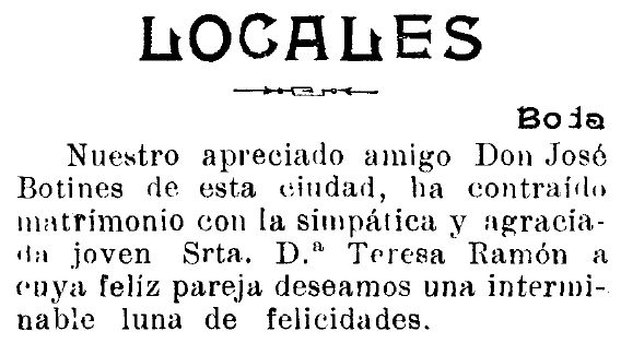 Al gener de 1915 va néixer el seu primer fill, Salvador Botines Ramon.