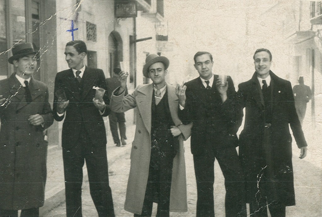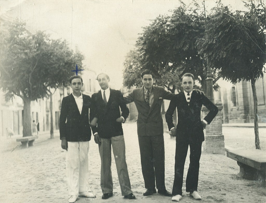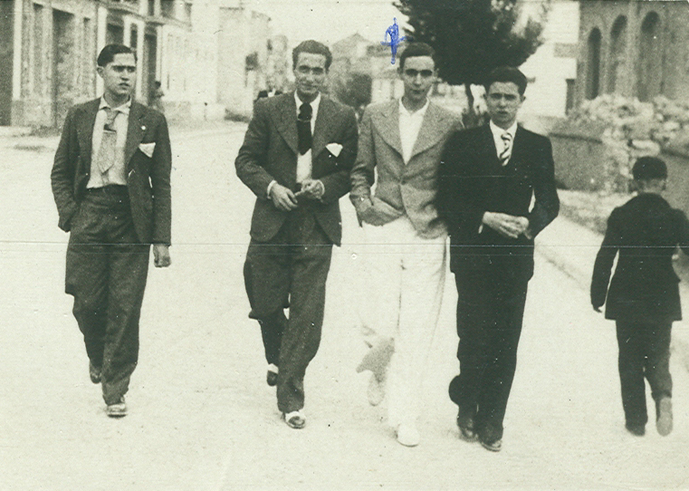 Festa Major de Cervera. 24 setembre de 1933. D’esquerra a dreta, Pepe Sisteró, Pepe Vilanova, Salvador Botines i joan colom.
