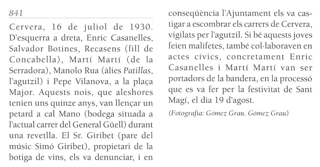 Ben propi de la seva edat en van fer alguna d’entremaliadura i en va quedar constància. Podeu llegir el fet que acompanya aquesta fotografia tot plegat publicat a la Història Gràfica de Cervera.