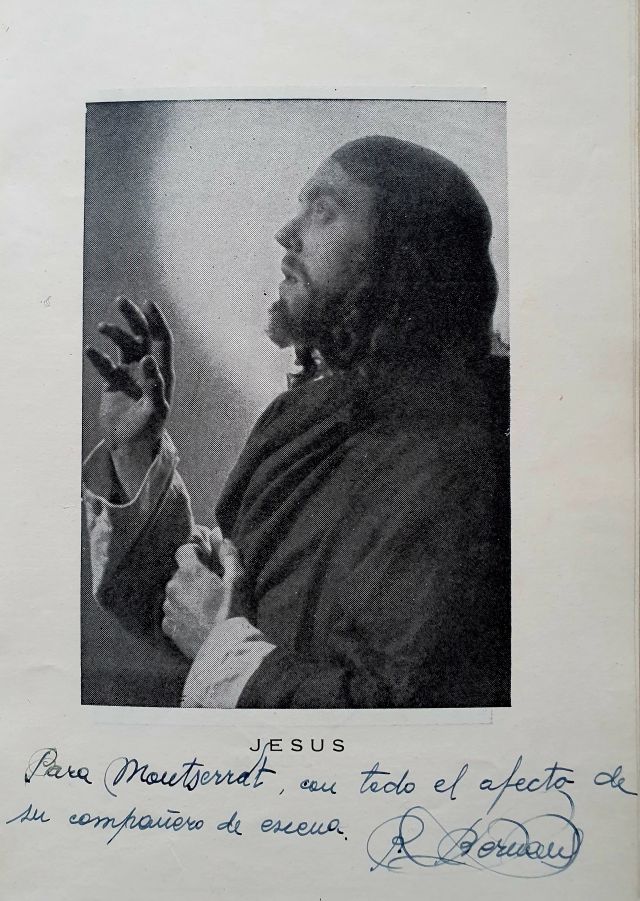 Ramon Bernaus va ser durant molts anys, sense fallar mai, l’únic Jesús de la Passió. Aquí podeu veure la seva imatge i la seva lletra i signatura en l’escrit.